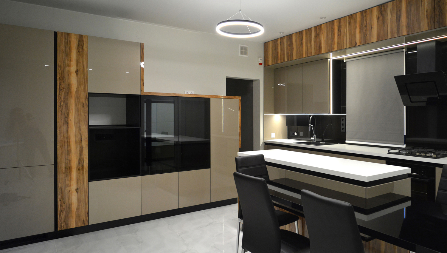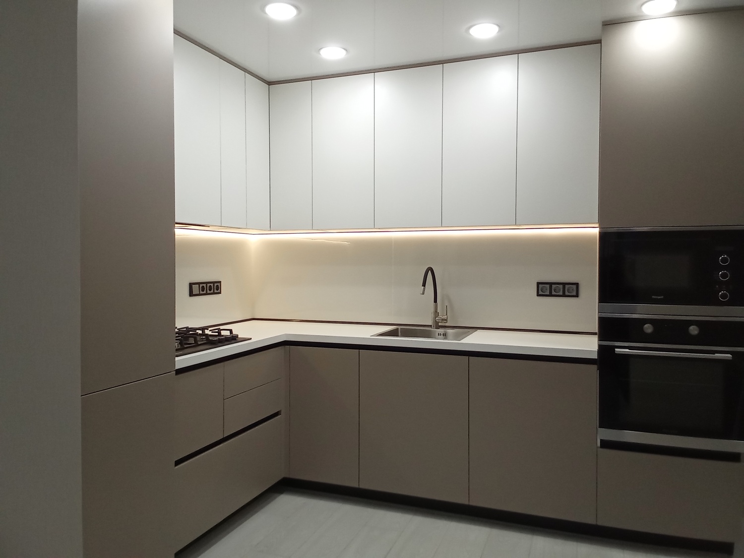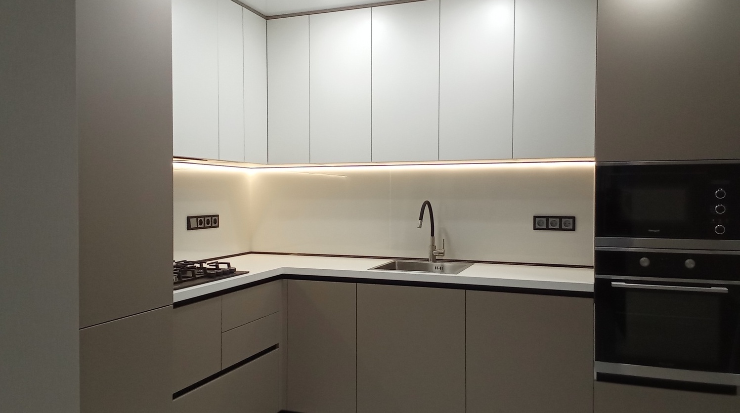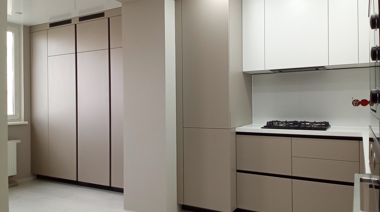 Угловая кухня с пеналами